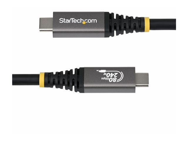 The StarTech.com USB-C cable offers a robust solution for connecting devices with high data, video, and power requirements. This cable supports USB4, Thunderbolt, and DisplayPort 2.1 standards, ensuring compatibility with a range of devices. With a data rate of 80 Gbps and support for 4K at 120Hz and 8K at 60Hz, it delivers visuals for entertainment and professional applications. Additionally, the cable incorporates features such as HDR support, Display Stream Compression, and an e-marker chip, enhancing performance and efficiency. Power delivery up to 240 W allows for fast charging of compatible devices, making this cable a versatile accessory in any tech setup.