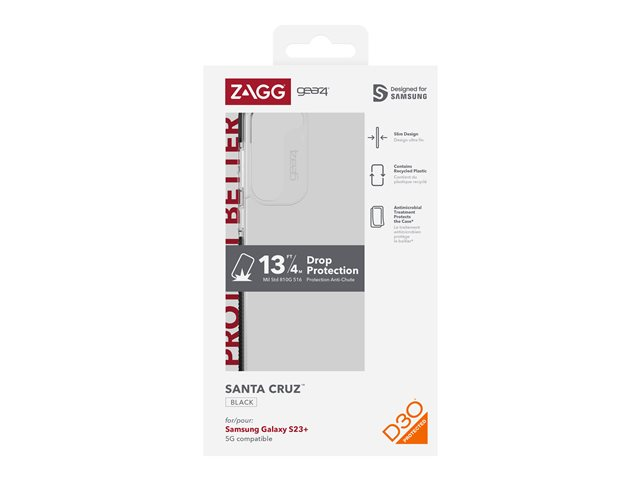 Prisbelønnet slagbeskyttelse i et slankt, stilfuldt design, der viser beskyttelsesmaterialet frem. Det smukke Santa Cruz-etui giver faldbeskyttelse på op til fire meter (13 fod). Det er lavet med D3O-teknologi for uovertruffen slagbeskyttelse og har egenskaber, der modvirker gulning, så det forbliver lige så gennemsigtig, som da du købte det. D3O - som er den samme teknologi, der anvendes af militæret og professionelle atleter - er nøglekomponenten i ZAGG's fantastiske telefonbeskyttelse. D3O er et bøjeligt, fleksibelt materiale, der hærder ved slag, afleder stød og beskytter din enhed. Etuiets slanke design gør, at din enhed nemt passer i din lomme og samtidig ser slank og stilfuld ud i hånden. Santa Cruz Snap indeholder RepelFlex, som er en antimikrobiel belægning med egenskaber, der er udviklet til at beskytte din etuibelægning ved at hæmme væksten af lugtfremkaldende bakterier og beskytte mod nedbrydning fra mikroorganismer. Etuiet er også 5G-kompatibelt og delvist lavet af genbrugsplast, der består af genvundet affald eller industrielt overskudsmateriale. Santa Cruz er kompatibel med de fleste trådløse opladere.