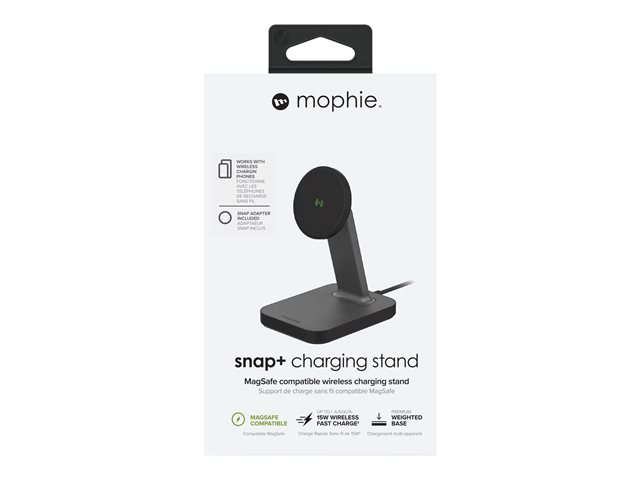 Oplev helt nye muligheder for opladning. Den MagSafe-kompatible snap+ opladningsstander holder din telefon oprejst, mens den trådløst forsynes med op til 7,5 til 15 W. Der medfølger også en adapter, som gør det muligt for telefoner, der ikke er kompatible med MagSafe, at blive fastgjort til standeren magnetisk. Din telefon placeres med det samme det rigtige sted og starter opladningen ved kontakt. snap+ opladningsstanderen holder din telefon over rodet på dit skrivebord, så du kan videochatte, se film eller læse beskeder, mens din telefon oplader.