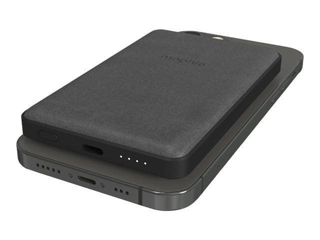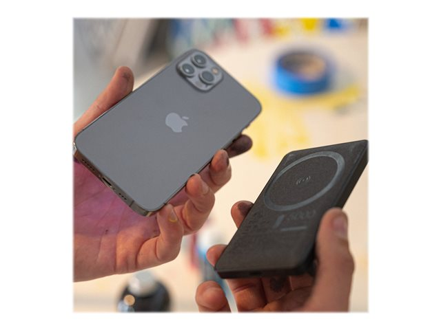 Snap+ juice pack mini indeholder et internt batteri med 5.000 mAh, der vidner om mophies store engagement i optimering af mobil strøm. Brug USB-C-input-/outputporten til hurtig genopladning af snap+ juice pack mini eller op til 12 W opladning1 af en anden enhed. Det magnetiske område sikrer nøjagtig placering, så opladningen begynder, så snart der er kontakt, og den integrerede LED-strømindikator med fire lys viser opladningsstatus og aktuel batterilevetid.