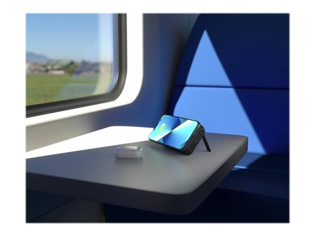 - Charges a second device on the back
