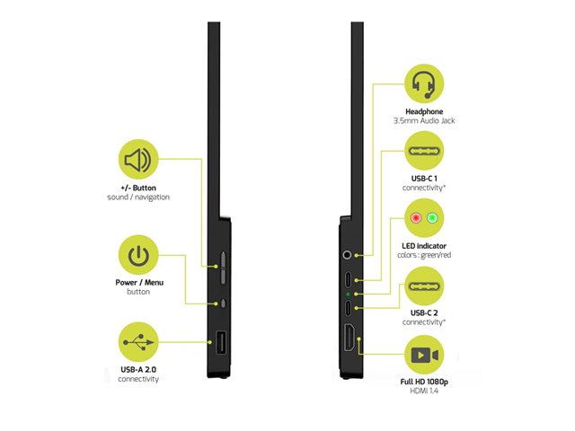- Flere indgangsgrænseflader, herunder HDMI og USB-C