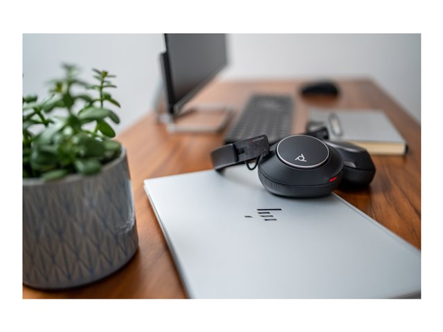 Work where you want and sound your best with the over-ear, boomless Bluetooth headsets - Voyager Surround 80 UC. Immerse yourself in rich audio, stay in complete comfort with soft ear cushions and an adjustable headband, and keep focused with adaptive ANC.