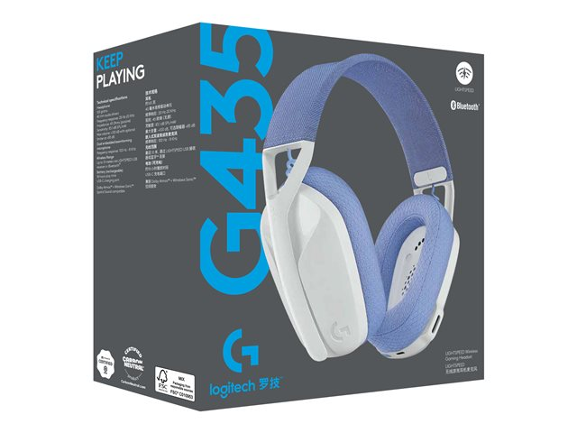 Logitech G435 LIGHTSPEED trådløst gaming headset En trådløs LIGHTSPEED og Bluetooth-forbindelse med hurtig reaktionstid lader dig spille og snakke på PC, Mac, PS5/PS4, smartphones og andre lydaktiverede Bluetooth-enheder. Lyd i gaming-kvalitet med nøje balanceret hi-fi lyd, 40 mm lyddrivere og kompatibilitet med Dolby Atmos og Windows Sonic giver den ultimative surround sound til alle dine gaming-eventyr. Med Dual Beamforming-mikrofoner som reducerer baggrundsstøj uden en mikrofonarm. Desuden er G435 tilgængelig i flere farver så du kan matche din favoritstil til dit gaming-setup.
