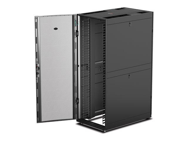 - Equipment mounting rails integrate with patch cabling systems