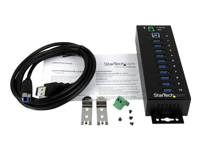 Metal Industrial USB-A Hub with ESD & Surge Protection - Din Rail, Wall or Desk Mountable - TAA Compliant USB Expander Hub (ST1030USBM) - Hub - 10 x SuperSpeed USB 3.0 - DIN monterbar på skinne - DC strøm - for P/N: ITB20D3250, USB312SAT3CB, USB315CB2M, USBLT1MWS, USBLT2MBR, USBLTM1MBK, USBLTM1MWH