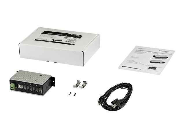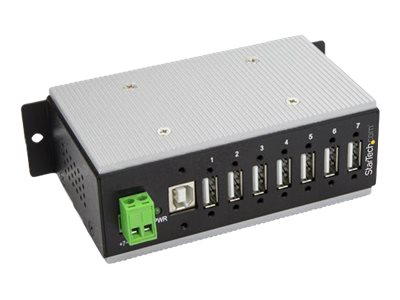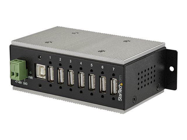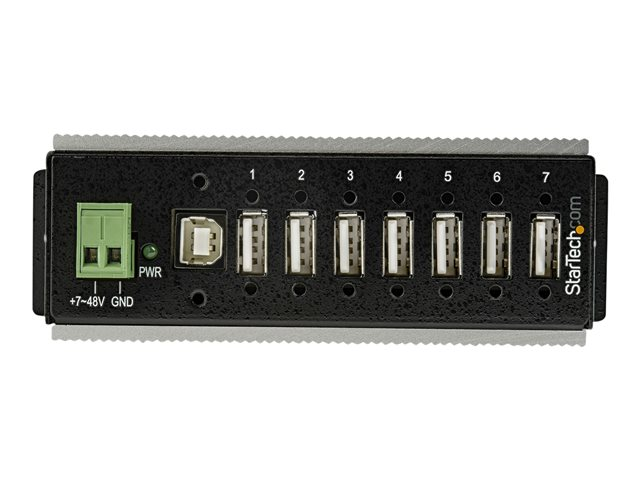 StarTech.com 7 Port USB 2.0 Hub, Metal Industrial USB-A Hub (7x USB-A) with ESD & Surge Protection, Extended Operating Temp -40 to 185°F, Din Rail/Wall/Desk Mountable, USB Expander, Rugged
