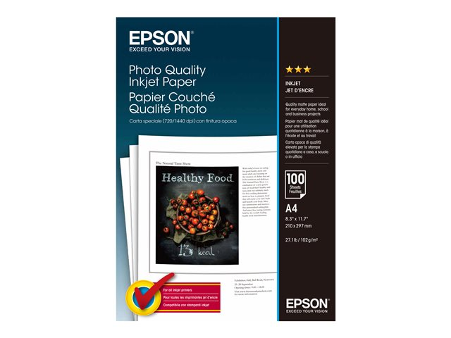 Mat - belagt - ren hvid - A4 (210 x 297 mm) - 102 g/m² - 100 ark papir - for EcoTank ET-2810, 2815, 2825, 2826, 2850, 2851, 2856, 4800, 4850; SureColor SC-P700, P900