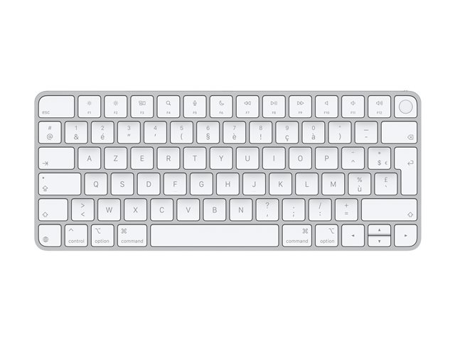 Magic Keyboard med Touch ID giver dig en utroligt behagelig og præcis skriveoplevelse. Det er også trådløst og genopladeligt med et indbygget batteri, der holder utroligt længe, så det kan holde dit tastatur kørende i omkring en måned eller mere, før det skal oplades. Det danner automatisk par med din Mac, så du kan komme i gang med det samme. Og der medfølger et vævet USB-C til Lightning-kabel, som giver dig mulighed for at danne par og oplade via en USB-C-port på din Mac.
