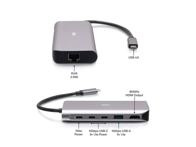 The C2G USB-C Mini Docking Station with HDMI, USB-A, Ethernet and USB-C Power Delivery connects to USB-C or Thunderbolt 3 and offers best-in-class video resolutions, supporting monitor resolutions up to 8K 60Hz. Utilizing USB 4.0, it matches the performance of leading Thunderbolt 4 solutions on the market, providing the best technology at an affordable price without sacrificing performance.
