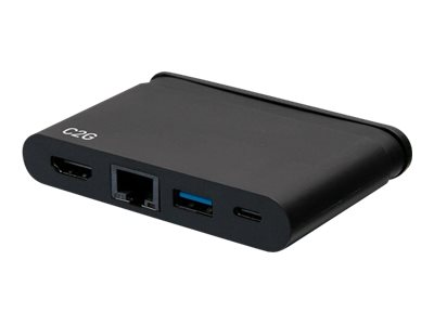Produktbeskrivelse C2G USB C Dock with HDMI, USB, Ethernet, USB C & Power Delivery up to 100W - dockingstation - USB-C / Thunderbolt 3 - HDMI - 1GbE Produkttype Dockingstation Docking-interface USB-C / Thunderbolt 3 Videointerfacer HDMI Dimensioner (B x D x H) 9 cm x 6 cm x 1.55 cm Vægt 66 g Farve Sort Netværk Gigabit Ethernet Producentgaranti 5 års garanti -