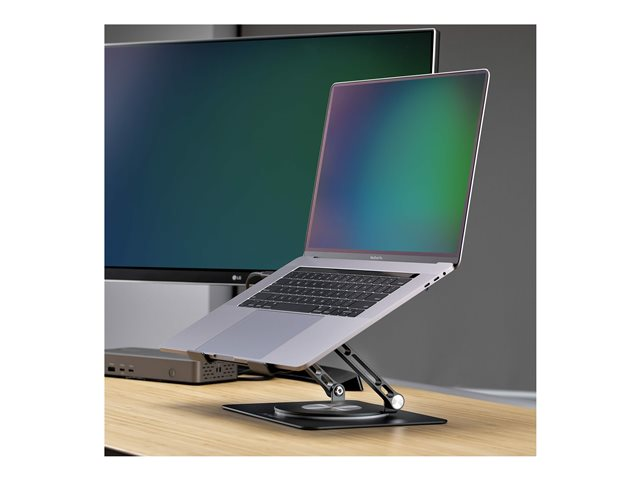 With features like tilt adjustment and 360° swivel capability, users can customize their setup to achieve the perfect viewing angle. The stand is foldable, making it easy to store and transport when not in use. Additionally, the passive airflow design contributes to better heat dissipation, and the anti-slip pads provide stability, ensuring that your device remains securely in place even during use. With a max load weight of 5 kg, this versatile laptop stand caters to various devices and enhances the overall ergonomic experience.