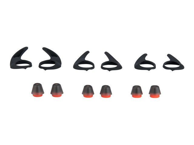 Jabra Evolve 75e tilbehørspakken øger komforten med tre par EarGels i tre forskellige størrelser (S, M og L) og tre par EarWings (S, M og L). Vælg den rigtige størrelse for at opnå den bedste lydkvalitet under forskellige forhold.