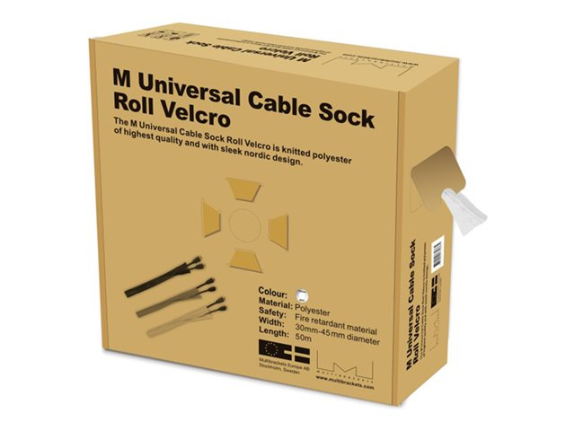 The M Universal Cable Sock Velcro is knitted polyester of highest quality and with sleek nordic design. The M Universal Cable Velcro Socks hold any type of cables for example scart, HDMI, CRT, VGA and other main leads and expands easily.